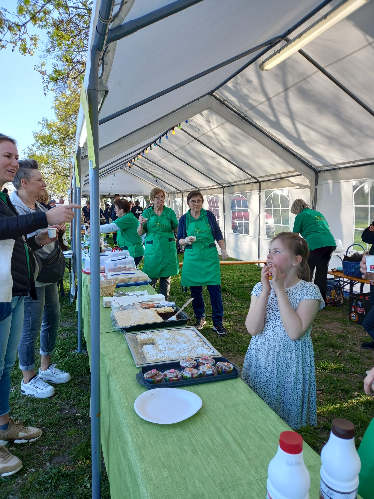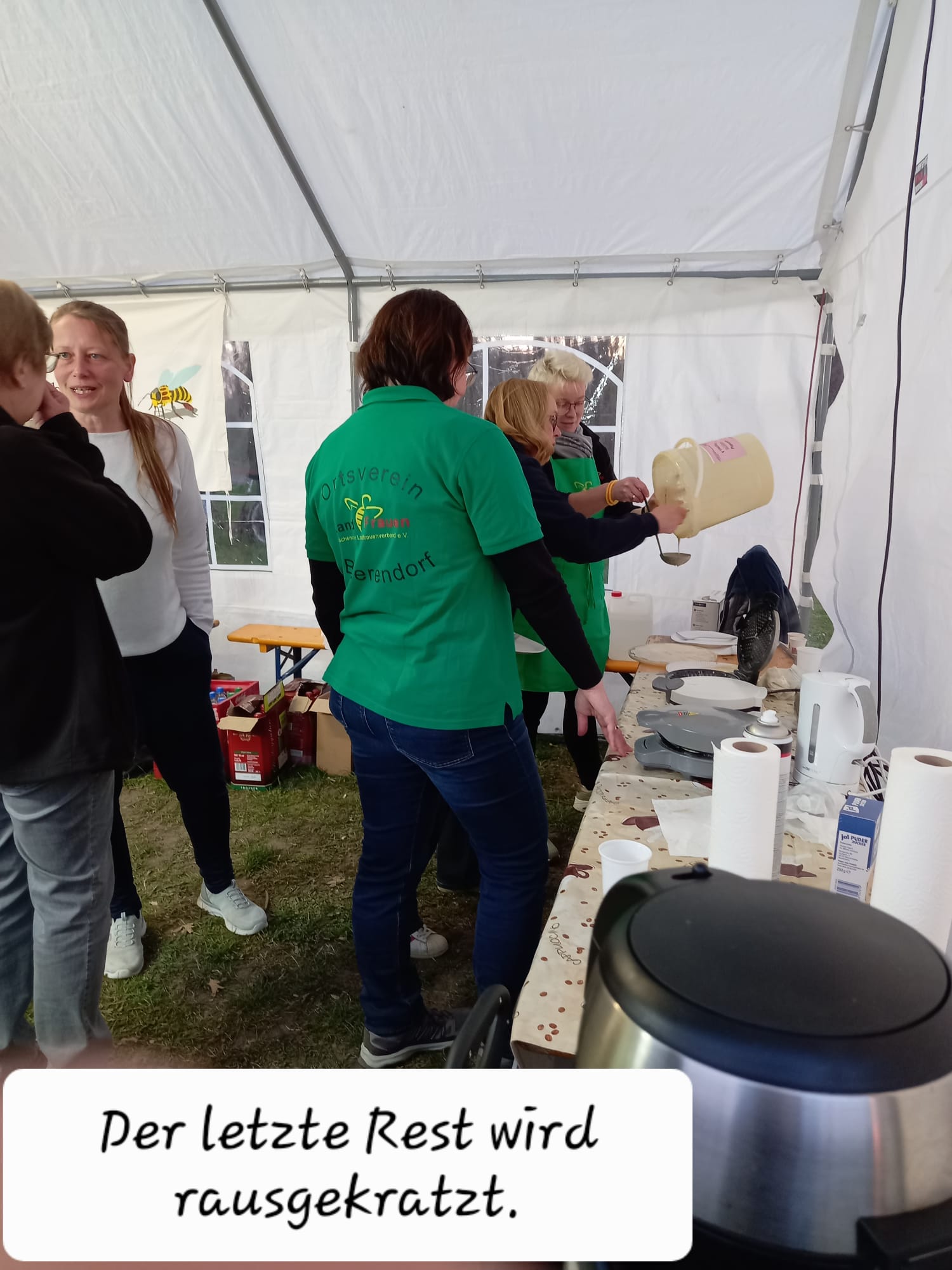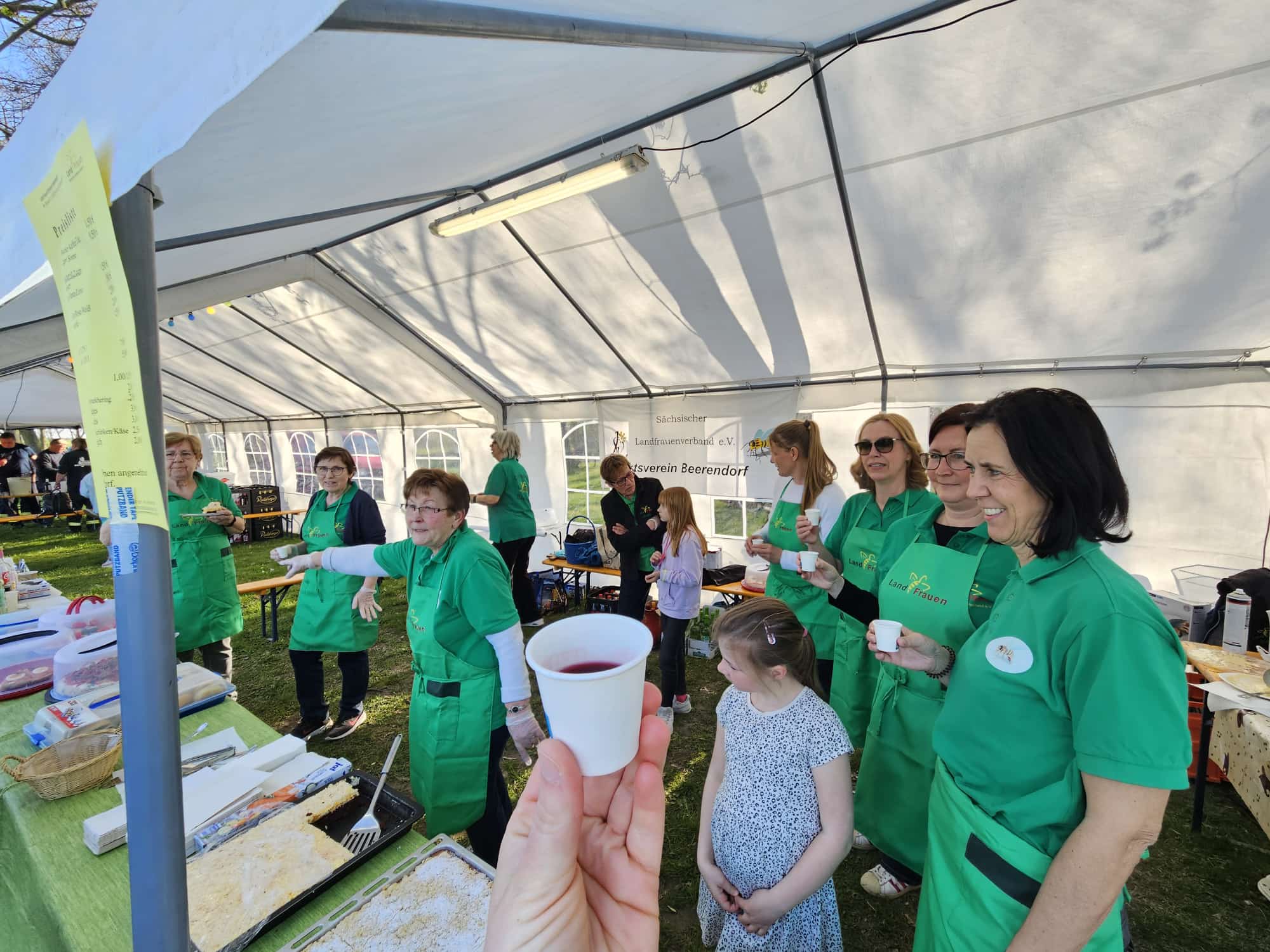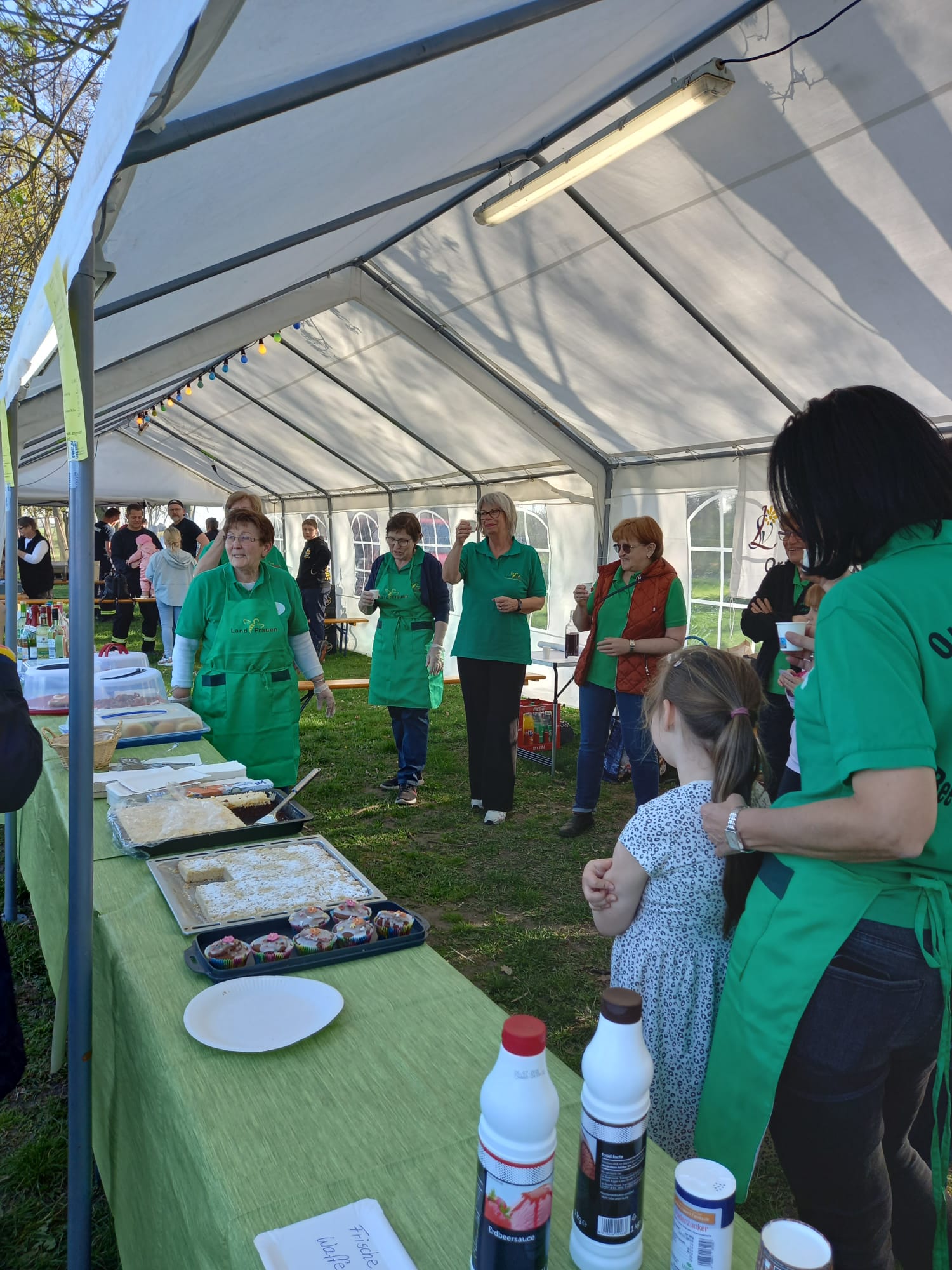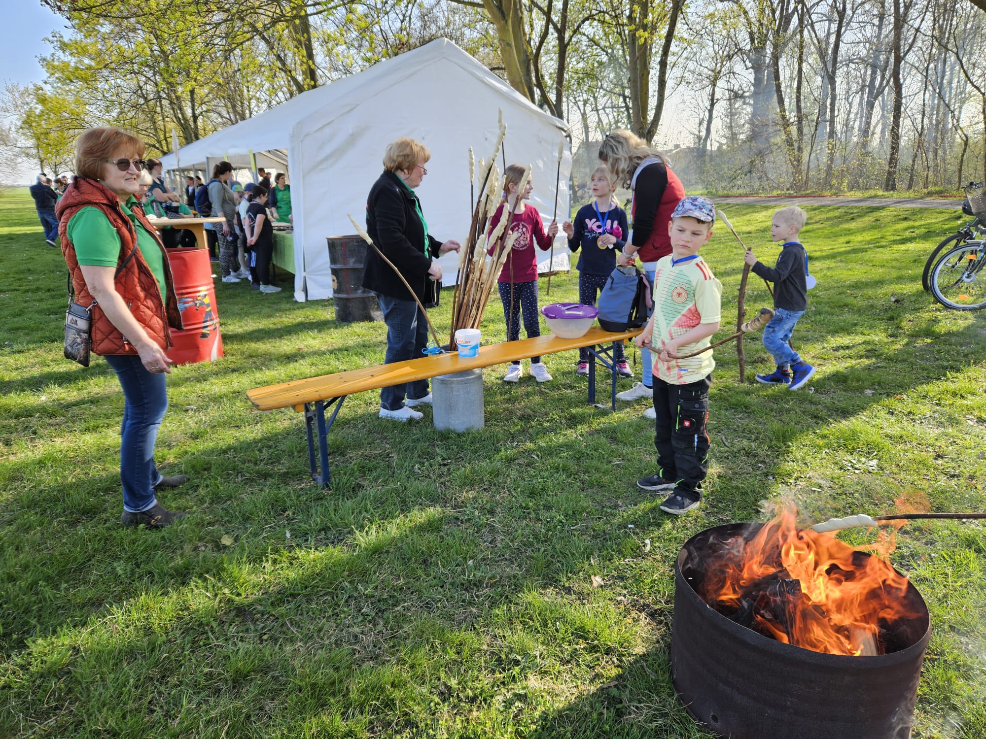 Die Kameraden der Freiwilligen Feuerwehr nehmen vormittags das Brennholz entgegen und bauen die Zelte auf. Am Nachmittag bereiten viele fleißigen Hände die Versorgung der Besucher mit Speisen und Getränken vor. Besonders beliebt bei den Kindern ist der Knüppelkuchen.
