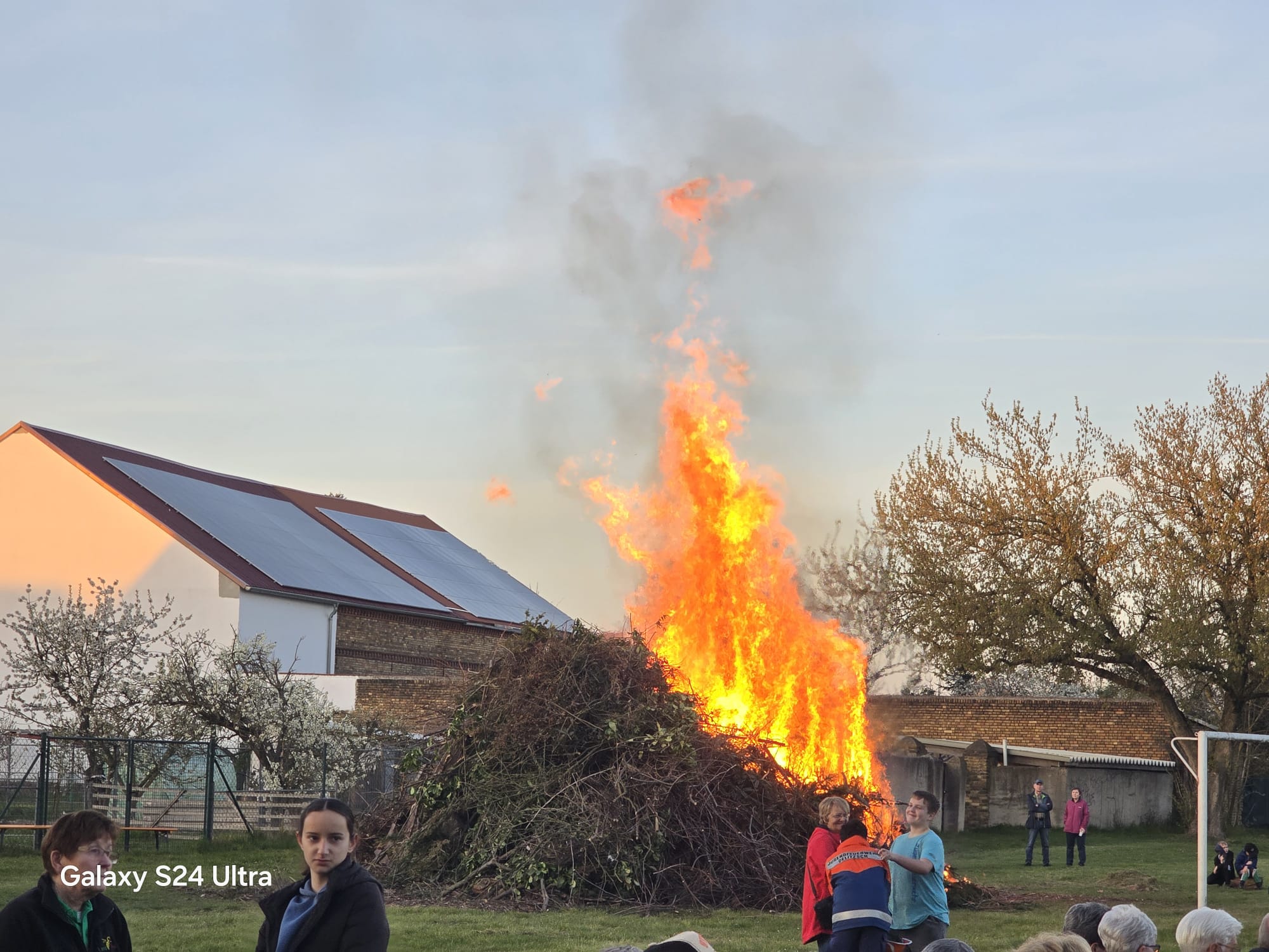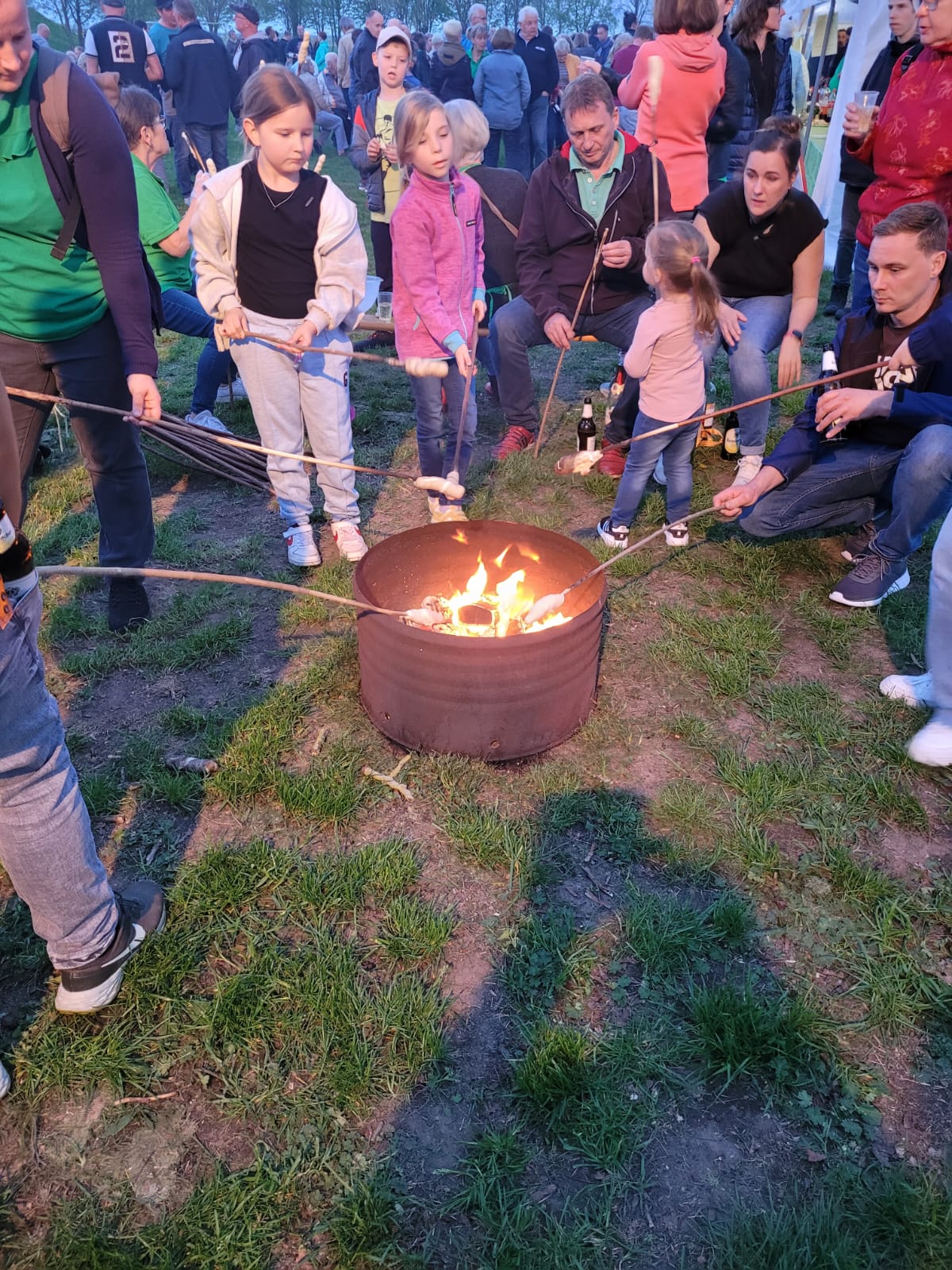 Wenn das Feuer entzündet wird sind viele Beerendorfer Familien und auch Besucher aus der Umgebung auf dem Sportplatz. Die Kinder können sich austoben und die Erwachsenen nutzen die Zeit für ein Schwätzchen.